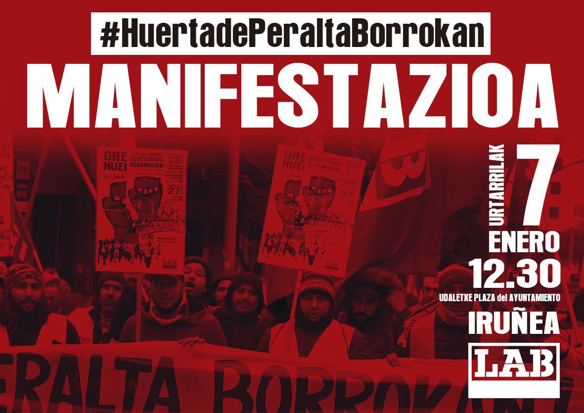 El pasado miércoles, 2 de enero, el comité de huelga de Huerta de Peralta trasladó una propuesta a la empresa con el fin de solucionar el conflicto que ha llevado a sus trabajadores y trabajadoras a iniciar una huelga Indefinida. La empresa se comprometió a estudiarla y dar una respuesta el viernes, 4 de enero. Pues bien, la dirección ha rechazado rotundamente la propuesta, por lo que los trabajadores segirán adelante con la huelga y las movilizaciones. La próxima cita será el lunes, en Iruñea, donde a las 12:30 partirá una manifestación desde la plaza del ayuntamiento.