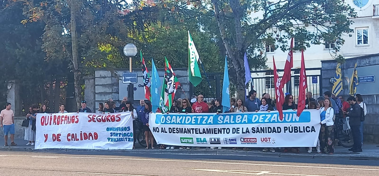 Con carácter previo a la reunión, los sindicatos han realizado una concentración para denunciar el maltrato sistemático al que Osakidetza somete a su plantilla con el desastre en la gestión de los procesos selectivos y de provisión.