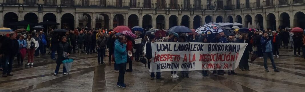 El Comité de Trabajadores y Trabajadoras del Ayuntamiento de Gasteiz se ha concentrado hoy en la Plaza Nueva a la hora del pleno municipal, con el objetivo de defender una condiciones laborales dignas, y ha convocado una manifestación para el día 23.
