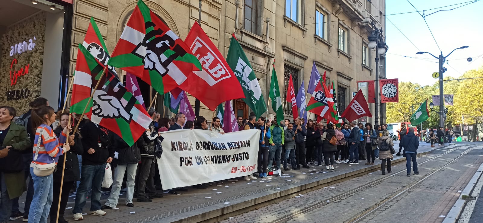 Por eso, hoy nos hemos llevado a cabo una concentración formada por los sindicatos LAB, ELA, UGT y CCOO, para mostrar nuestro malestar y anunciar las próximas movilizaciones. Hemos convocado paros tanto de mañana como de tarde para los días 11 y 12 de diciembre (de 9:30 a 11:30 y de 17:30 a 19:30).