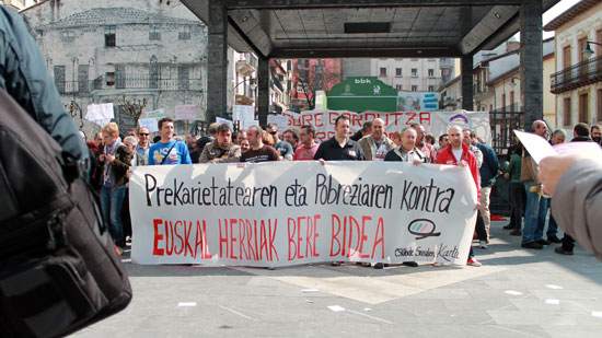 Euskal Herriko eragile sozial eta sindikalek pobreziaren kontrako mobilizazio kanpainaren baitan, gaur, martxoak 11, 22ra arte Hego Euskal Herria gurutzatuko duen "Nos arrastran la empobrecimiento y la precariedad. Euskal Herriak bere bidea" Martxari hasiera eman zaio Ermuan eta Arrasaten.