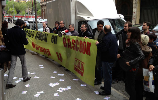 El restaurante Bascook de Bilbao ha despedido a un trabajador tras presentarse a las elecciones sindicales como candidato de LAB. Desde el sindicato entendemos que esta decisión es un claro acto de acoso sindical y de abuso de poder por parte de la citada empresa y su responsable. El sindicato LAB se concentro ayer frente al restaurante para denunciar los continuos ataques contra los derechos laborales y sindicales de los y las trabajadoras y en defensa del derecho a la libertad sindical.