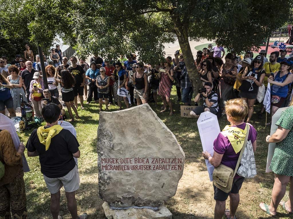 Irunen eta Hendaia artean inposatutako mugan abiatu zen karabana, Bidasoa ibaiko muga gurutzatzen bizia galtzen ari diren pertsonak gogora ekartzeko eta Europako migrazio politika hiltzaileak eta kontrol arrazistak salatzeko.