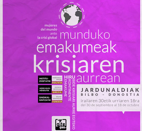 Hiru emakume -Mariela Prada (Bolivia), Georgia Bekridaki (Grezia) eta Souad Mahmoud (Tunez) – hiru kontinente eta hiru tresna krisiari aurre egiteko: instituzioetatik, sindikalgintzatik eta herri mugimendutik.