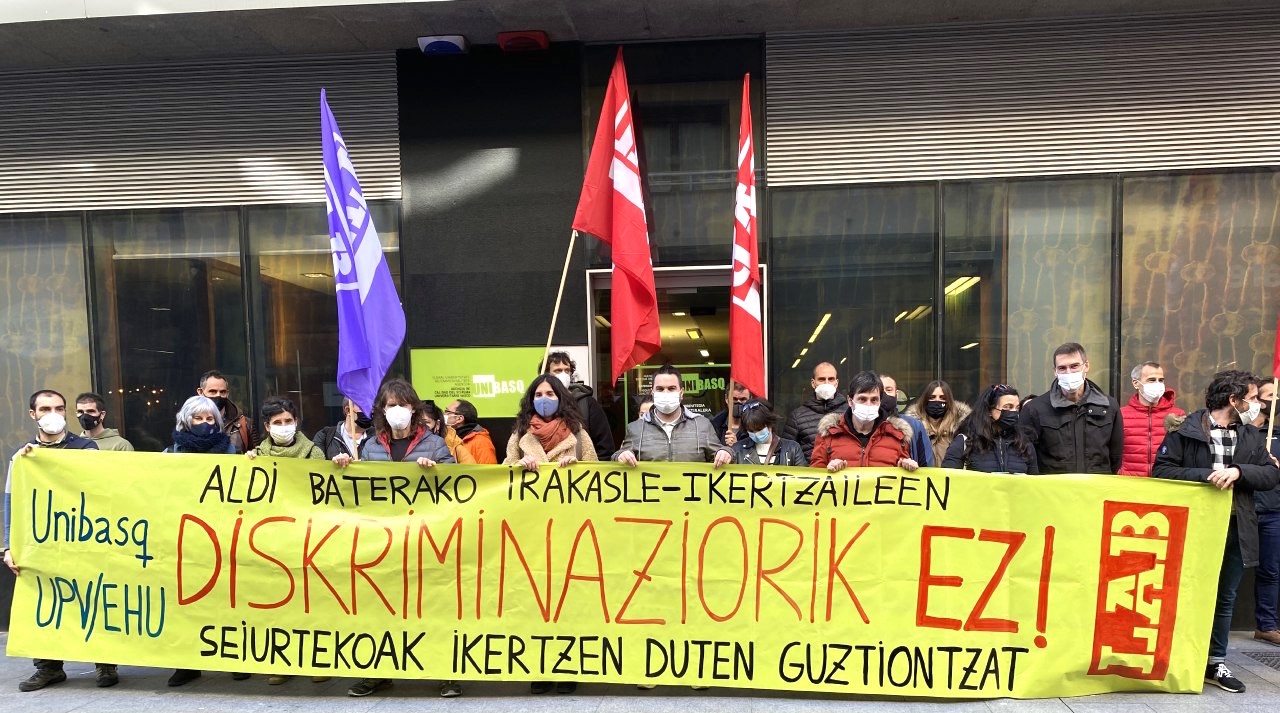Esta discriminación no es nueva, pero este año se ha abierto por primera vez la posibilidad de que las agencias de evaluación incluyan a este colectivo en la convocatoria de sexenios. A pesar de ello, Unibasq, ente dependiente del Gobierno de la CAV, ha cerrado la puerta a dicha posibilidad, manteniendo así la discriminación que viene sufriendo el personal docente e investigador no permanente. Del mismo modo, el equipo de gobierno de la UPV/EHU, aún teniendo representación en el Consejo de Gobierno de Unibasq, no ha tomado ninguna medida a favor de sus trabajadoras y trabajadores. Han elegido esperar hasta que un tribunal les obligue a abrir las convocatorias de sexenios a este colectivo. Sale más barato seguir discriminando a este amplio colectivo que desarrolla a diario su actividad investigadora en la universidad… Luego nos hablarán de responsabilidad social y de excelencia.