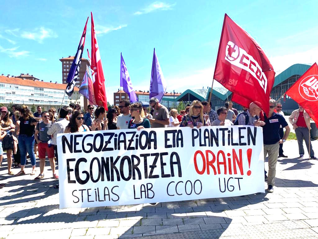 LAB, STEILAS, CCOO y UGT hemos denunciado en Gasteiz, ante la sede central del Gobierno Vasco, la actuación unilateral del Departamento de Educación a la hora de tomar decisiones que condicionan el día a día de nuestros centros.