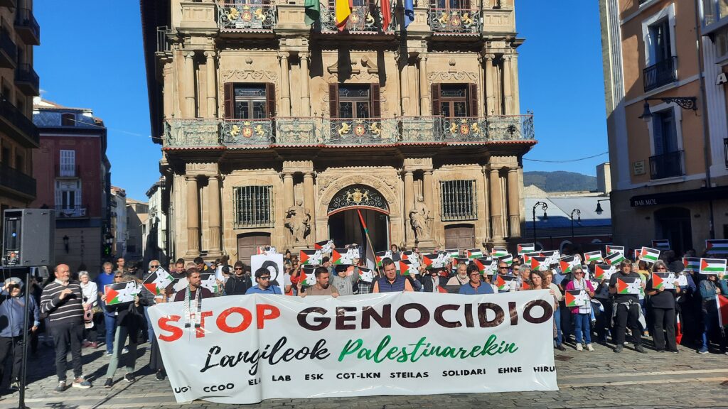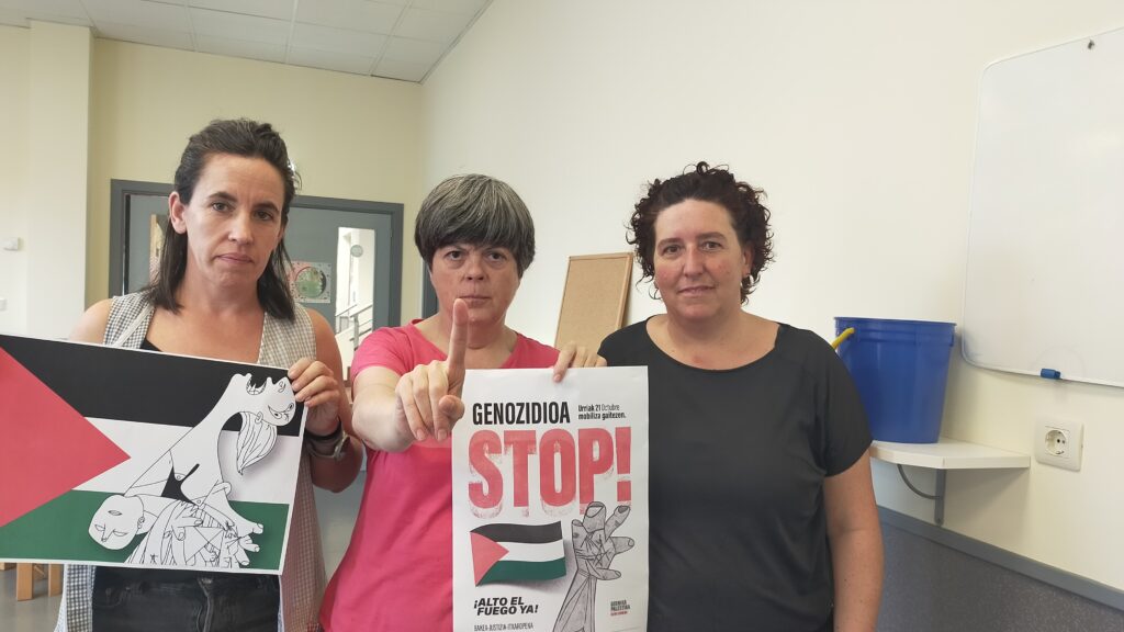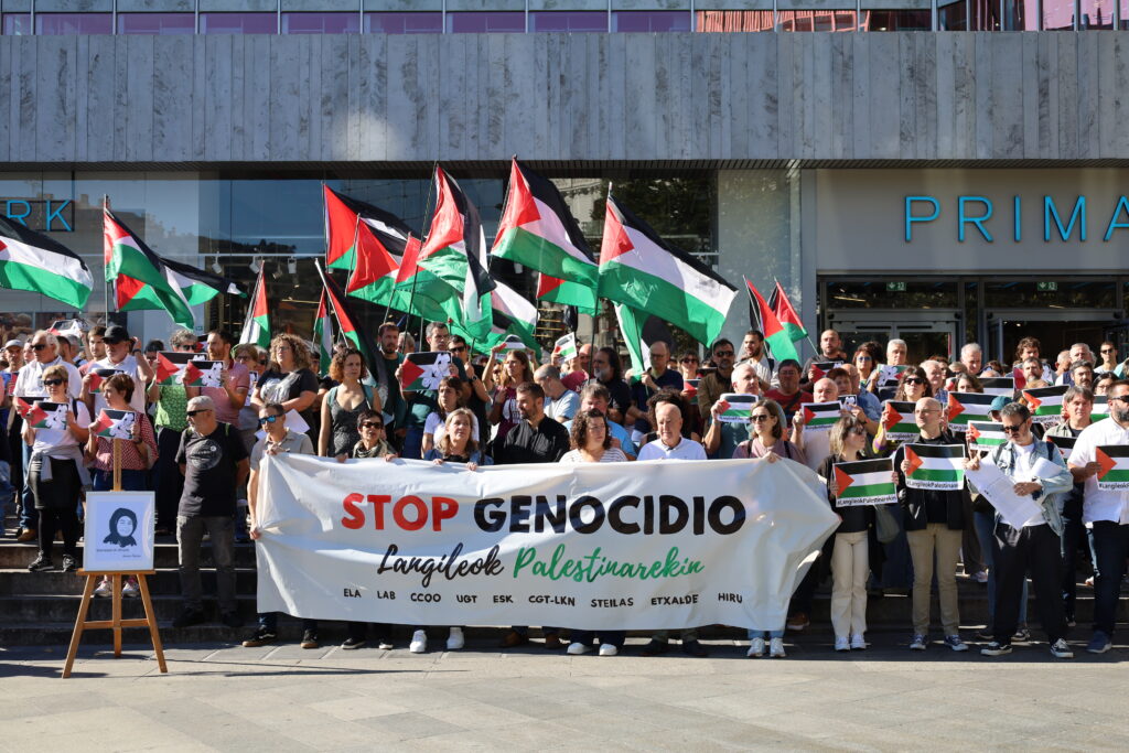 «La visión de las y los trabajadores de Euskal Herria ha quedado clara: estamos con el pueblo palestino y en contra del genocidio», ha añadido Arroyo, quien a continuación ha interpelado a las instituciones públicas y patronales de Euskal Herria. «¿Cuál es vuestra posición? ¿Qué actitud tomaréis ante este genocidio y, en particular, ante el sionismo que lo está impulsando? Exigimos a las instituciones públicas y a la patronal que rompan relaciones con los genocidas para presionarlos y que no hagan negocio con ellos en estos momentos tan duros”.