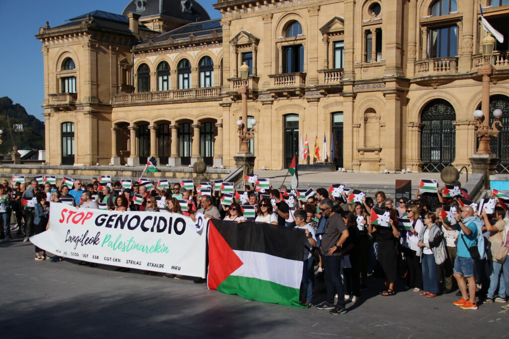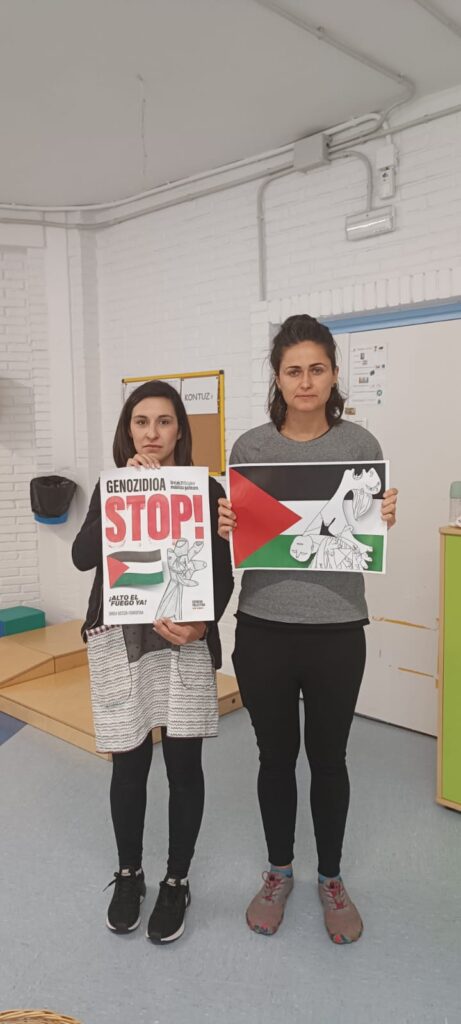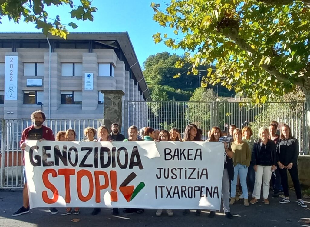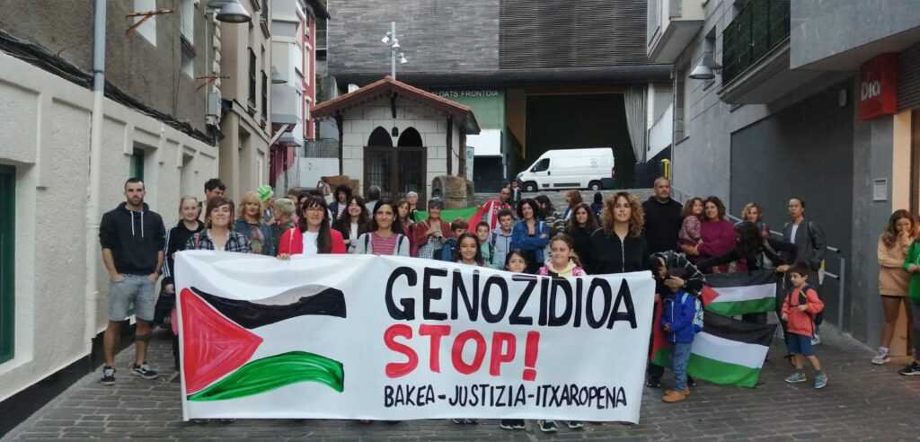 Por la tarde, la iniciativa Gernika-Palestina ha convocado movilizaciones a las 19:00 horas frente a los Ayuntamientos y hemos hecho un llamamiento a participar en ellas.
