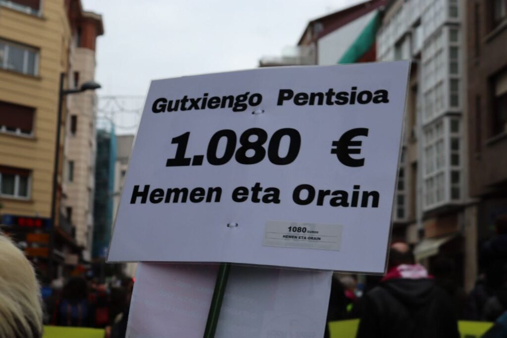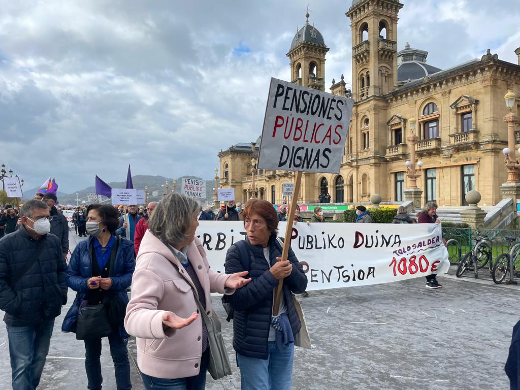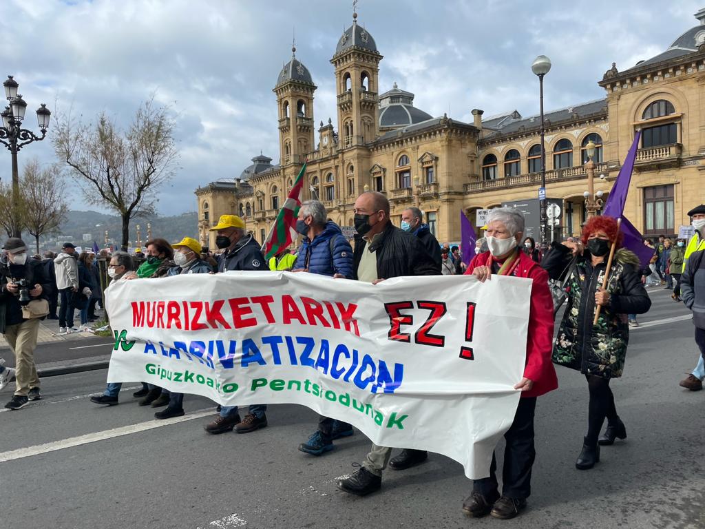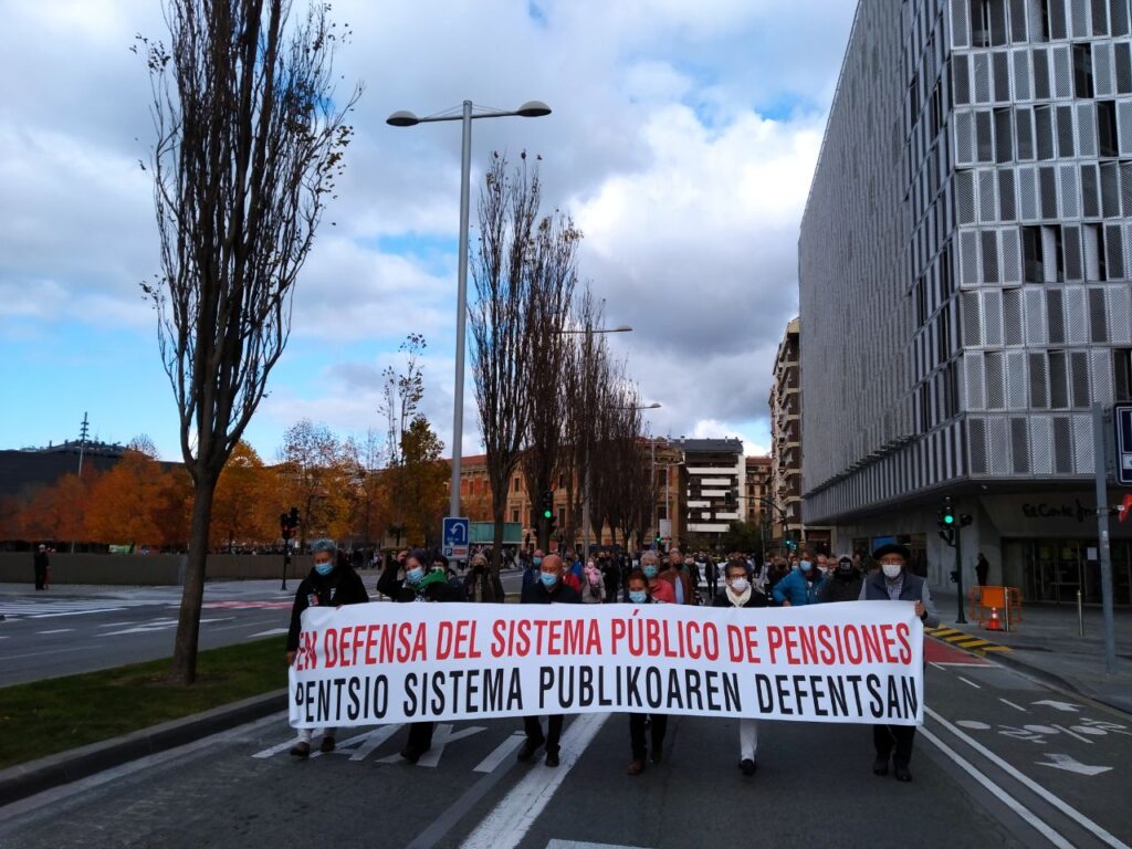 El movimiento de pensionistas ha realizado manifestaciones en Hego Euskal Herria en defensa de unas pensiones dignas. Al mediodía, han tenido lugar movilizaciones en Iruñea, Gasteiz, Donostia y Eibar. Por la tarde, en la comparecencia del pasado lunes, se convocó a la ciudadanía a que acudiera a Bilbo.