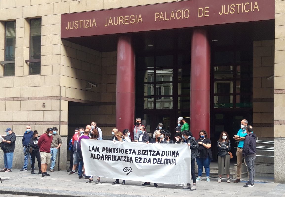 Un joven de Ermua ha sido juzgado hoy por una denuncia recibida en la Huelga General del 30 de enero de 2020. Ante este hecho, losa agentes de la Carta de Derechos Sociales de Euskal Herria nos hemos concentrado hoy en Bilbo, ante los juzgados, para mostrarle nuestro apoyo bajo el lema “Reivindicar trabajo, pensión y vida dignas no es delito”.