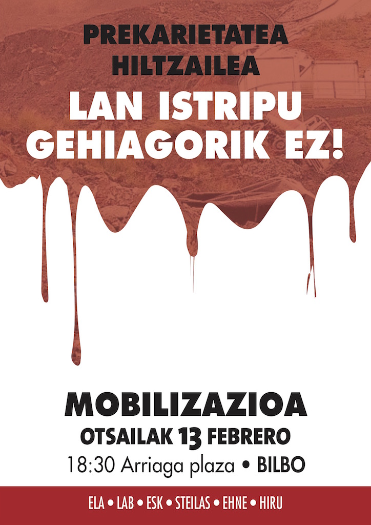 La temporalidad mata. La subcontratación mata. La falta de medidas de prevención mata. La avaricia mata, la insaciable patronal que utiliza la precariedad contra trabajadores y trabajadoras es la responsable de esto y el Gobierno Vasco, que está absolutamente alineado con esta patronal, es su cómplice.