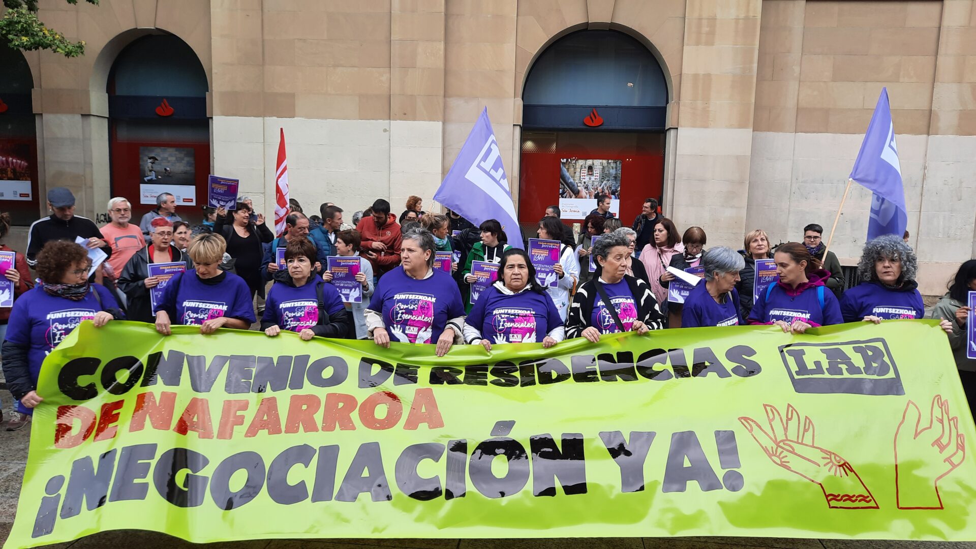 Hoy por la mañana miembros del sindicato LAB nos hemos concentrado en Iruñea, frente al Palacio de Navarra, para reclamar una vez más que se desbloqueen las negociaciones del que debería ser el primer convenio sectorial de residencias de Nafarroa. Seguiremos interpelando tanto al Gobierno como a la patronal para que se muevan de sus posiciones y den pasos que ayuden a la consecución de un convenio digno, con contenidos reales que mejoren sustancialmente las condiciones laborales de las trabajadoras.