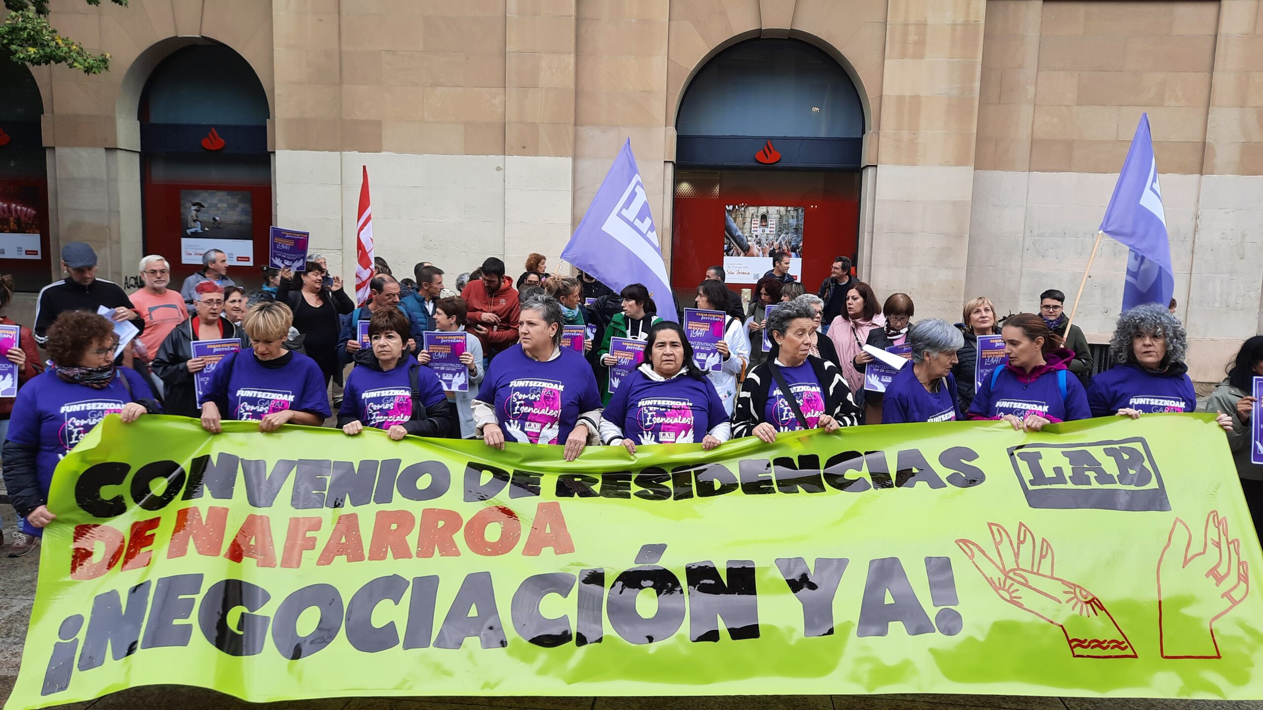 Tras casi tres años de lucha, la negociación del convenio sigue enquistada. La falta de interés de la patronal por otorgar unas mejores condiciones laborales a sus trabajadoras es evidente, pero también preocupa la actitud de pasividad que tiene el Gobierno de Nafarroa, en un servicio público que, desgraciadamente, está privatizado con el permiso de las instituciones públicas. El Gobierno no está buscando de manera activa el desbloqueo y eso hace que haya una paralísis integral de la negociación.