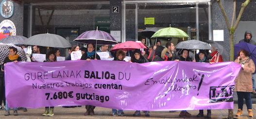 Un año más nos encontramos ante la misma constatación: no ha cambiado nada. Las políticas de igualdad no han conseguido cambiar esta realidad. La tan anunciada lucha contra la brecha salarial por parte del PNV, de la patronal, incluso de Emakunde no ha dado ningún fruto. No nos queda más que decir que si se han puesto medidas para atajar esta brecha no son efectivas porque no han dado resultados, o denunciar que las anunciadas medidas nunca se pusieron en marcha. Ha sido una año lleno de declaraciones y titulares, los resultados sin embargo, no los vemos.