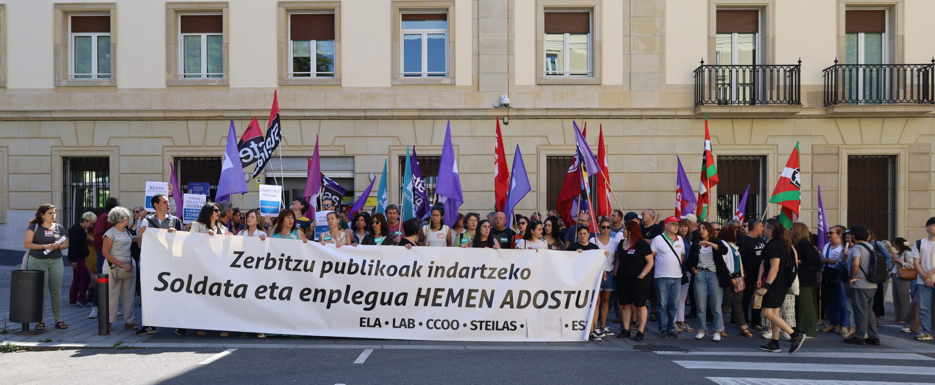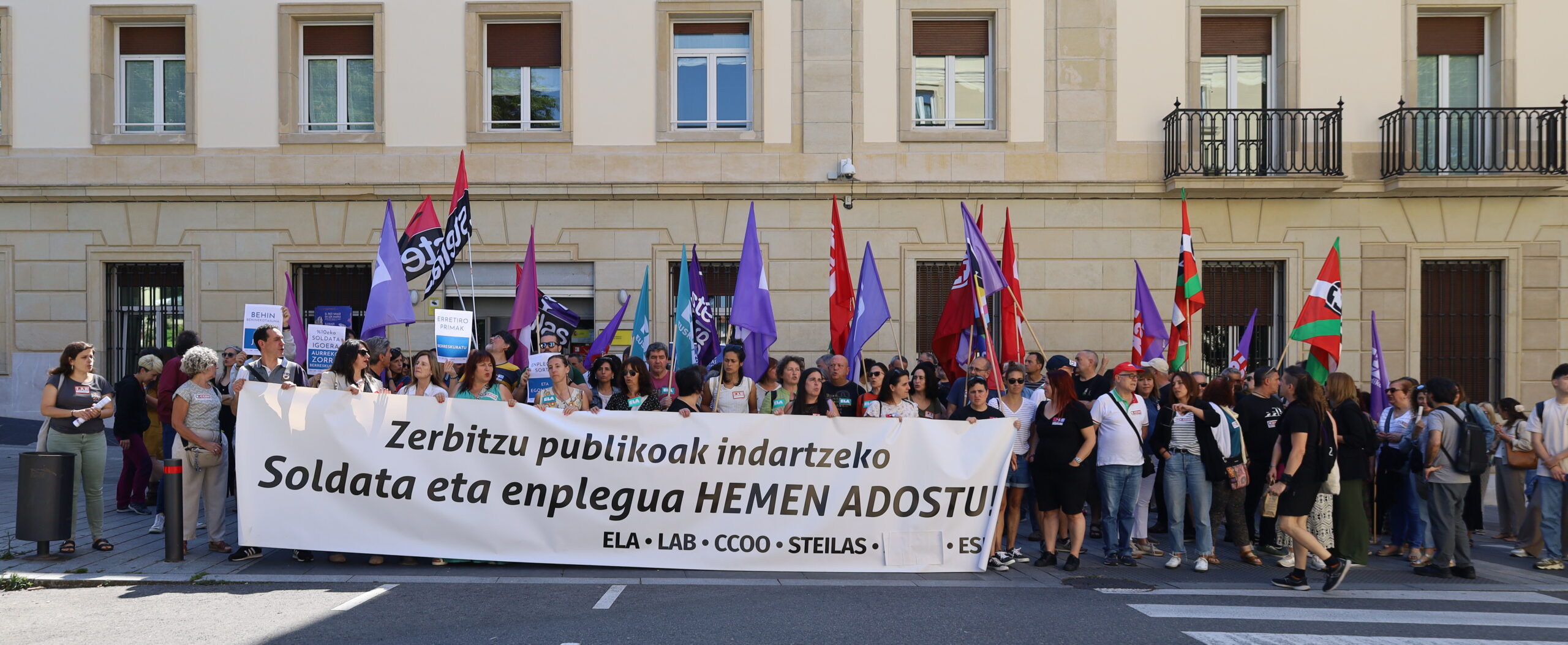 En este sentido, tenemos claro que seguiremos movilizándonos para conseguir reforzar los servicios públicos, acabar con la privatización y decidir aquí el empleo y los salarios de los empleadas y empleados públicos. Todo ello para acordar en las mesas de negociación recuperar el salario perdido, consolidar y crear empleo público, y acordar planes de rejuvenecimiento, garantizar la salud de las plantillas, garantizar el derecho a trabajar y vivir en euskara y reducir la jornada laboral.