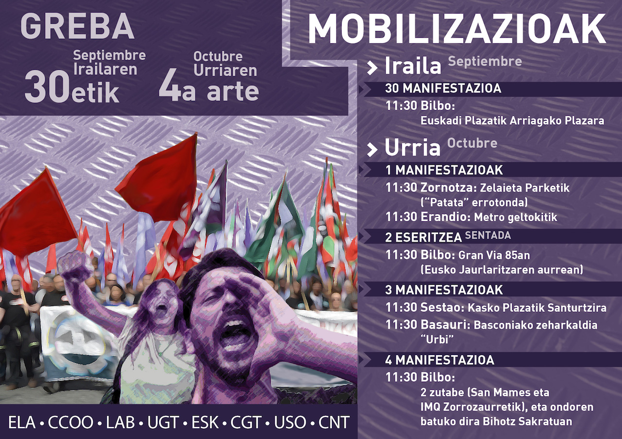 Asimismo, queremos denunciar la actitud policial, sobre todo en Durangaldea y Eskumaldea; han vulnerado el derecho de las y los piquetes una y otra vez, en favor de los intereses de la patronal. Un ejemplo de ello es que, a las 5:00 y 6:00 de la mañana, han impedido a las y los piquetes acercarse a las empresas de Elorrio y Abadiño, por lo que éstas y éstos no han podido hablar con las y los trabajadores. La policía tenía órdenes directas de ir contra la huelga, contra las y los trabajadores, en favor del capital.