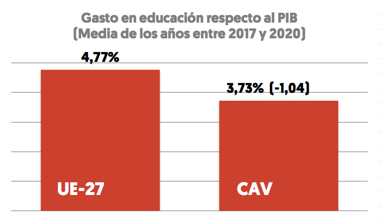 En la misma dirección, Pérez ha recordado el plan estratégico que necesita la Escuela Pública Vasca, insistiendo de nuevo en que la inversión en este apartado está lejos de Europa. En cuanto a las pensiones, ha señalado que el complemento de una pensión mínima de 1080 euros debería recogerse en los proyectos de presupuestos, recordando que según las estimaciones realizadas por el Movimiento de Pensionistas de Euskal Herria tendría un coste de 235M. Asimismo, denuncia la falta de inversiones concretas para configurar un sistema público comunitario de cuidados.