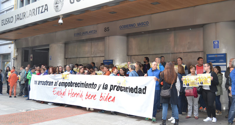 Gaur, urriak 17, Pobrezia Erauzteko Nazioarteko egunean, hainbat eragile sozial eta sindikal bildu gara Bilboko Eusko Jaurlaritzaren ordezkaritzaren aurrean ezartzen ari diren politika antisozialek jendartearen gehiengoaren pobretze orokortua sortaratzen dutela salatzeko. Egoera hau aldatzeko babes sozialeko sistema publiko, unibertsal eta duina aldarrikatzen dugu.