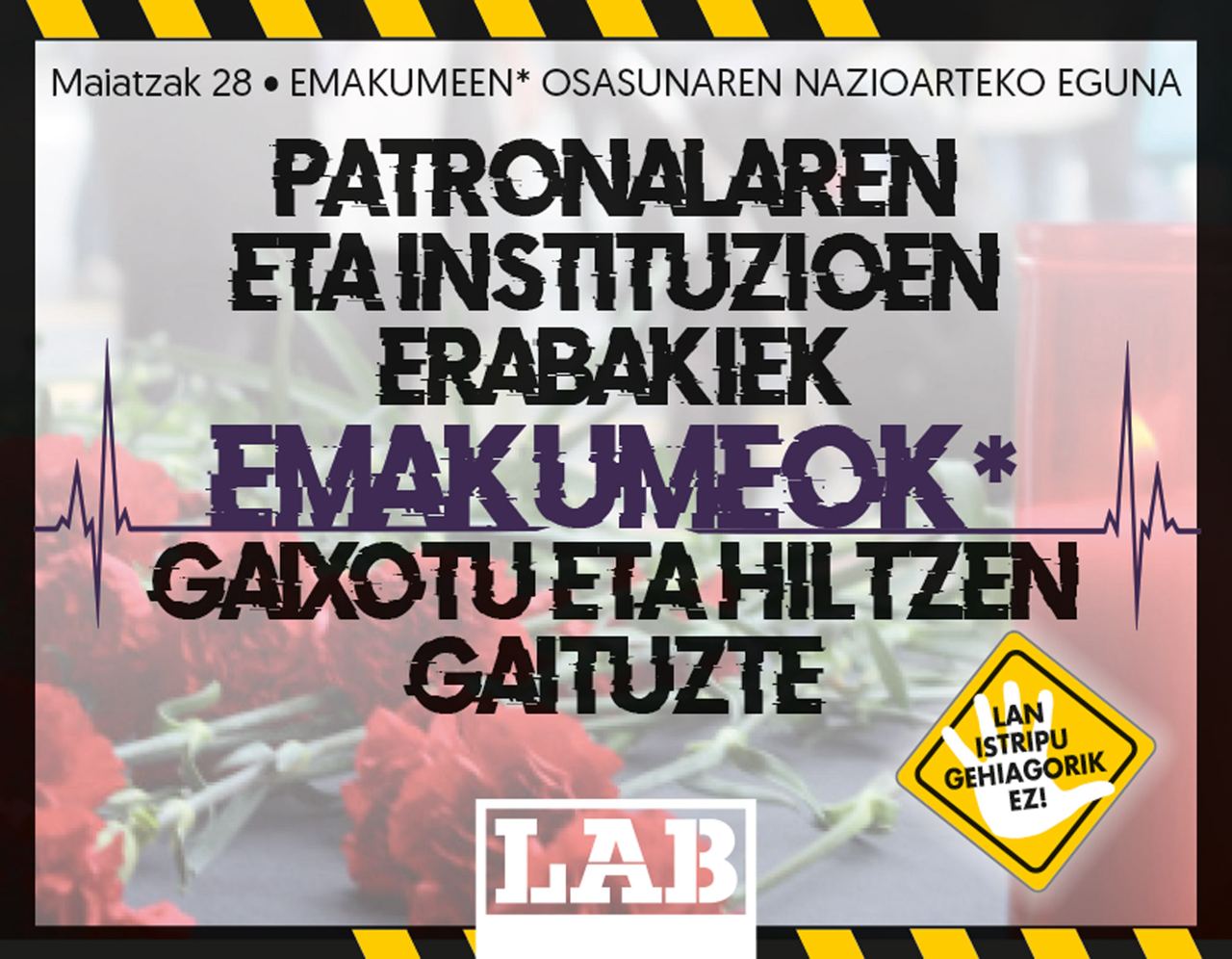 Hoy, Día Internacional de la Salud de las Mujeres*, hemos reivindicado la necesidad de incorporar una mirada feminista en la salud laboral. De hecho, hoy por hoy no existe una perspectiva de género en las políticas de prevención de riesgos laborales.