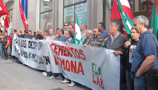 Y queremos hacer un llamamiento a las instituciones públicas en general y al pueblo de Lemoa en particular para que junto a LAB y al Comité de Empresa defendamos con todas nuestras el mantenimiento del empleo y la viabilidad de Cementos Lemona.