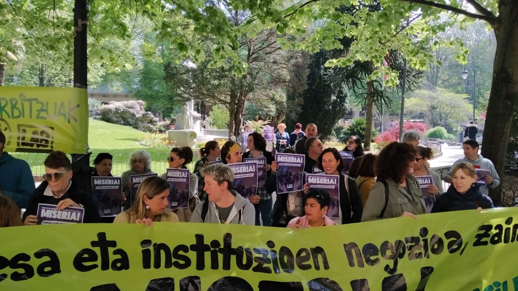 El servicio público de cuidados que prestan las instituciones no se garantiza desde lo público y dichas instituciones no asumen la gestión directa de los mismos, sino que delegan en empresas privadas, lo cual conlleva un perjuicio de las condiciones de trabajo del personal. La privatización afecta directamente tanto a las trabajadoras como a los usuarios y usuarias, y eso es lo que denuncia LAB: precariedad, explotación, parcialidad, eventualidad, ratios insuficientes, falta de medidas de salud laboral, de conciliación… La privatización de los trabajos de cuidados conlleva la degradación y empeoramiento de estos servicios.