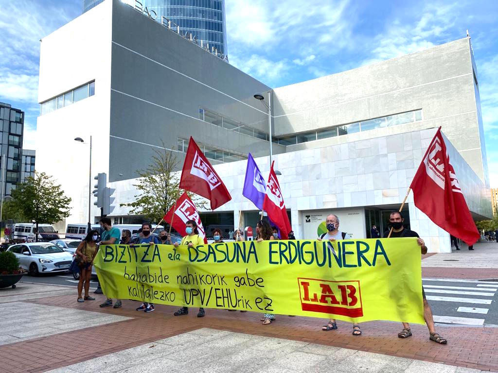 Por otro lado, pedimos a la Rectora de la UPV/EHU y al Lehendakari y Consejero de Educación del Gobierno Vasco que garanticen unas condiciones laborales dignas al conjunto de la plantilla de la universidad pública de nuestra comunidad autónoma; entre otras: