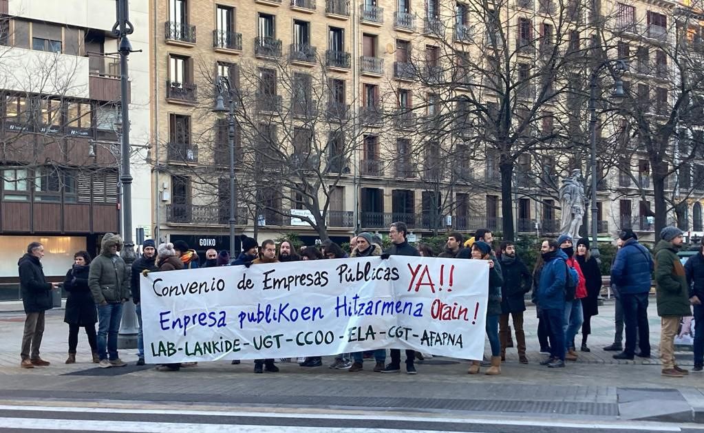 Los sindicatos LAB, Lankide, UGT, CCOO, ELA y CGT han convocado el próximo viernes 3 de marzo un paro de 4 horas en las empresas públicas de Navarra para exigir un convenio propio.