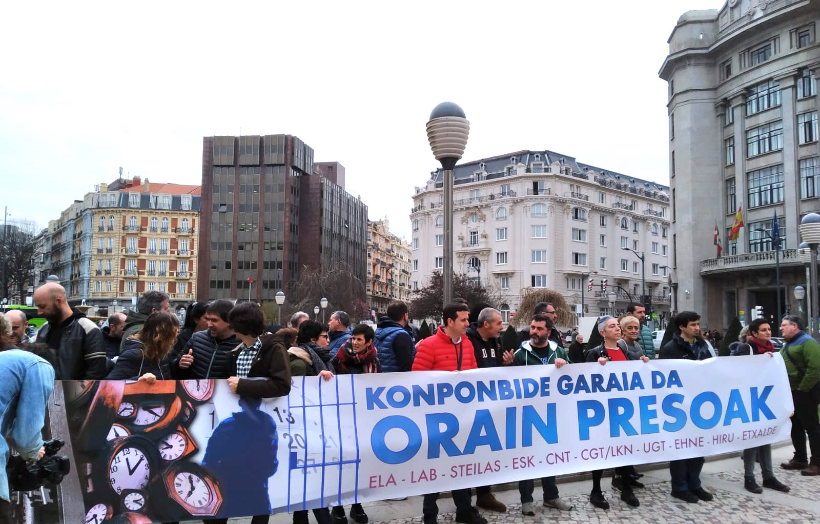 Hilabeteko hirugarren ostiralero bezala, LAB, ELA, UGT, ESK, STEILAS, CGT/LKN, CNT, EHNE, HIRU eta Etxalde sindikatuok hileroko elkarretaratzea egin dugu Bilbon, “Konponbide garaia da. Orain presoak” lemarekin, presoen eskubideen defentsan. Espainiako ordezkaritzaren aurrean bildu gara, presoen aferari konponbidea jar diezaioten exijitzeko.
