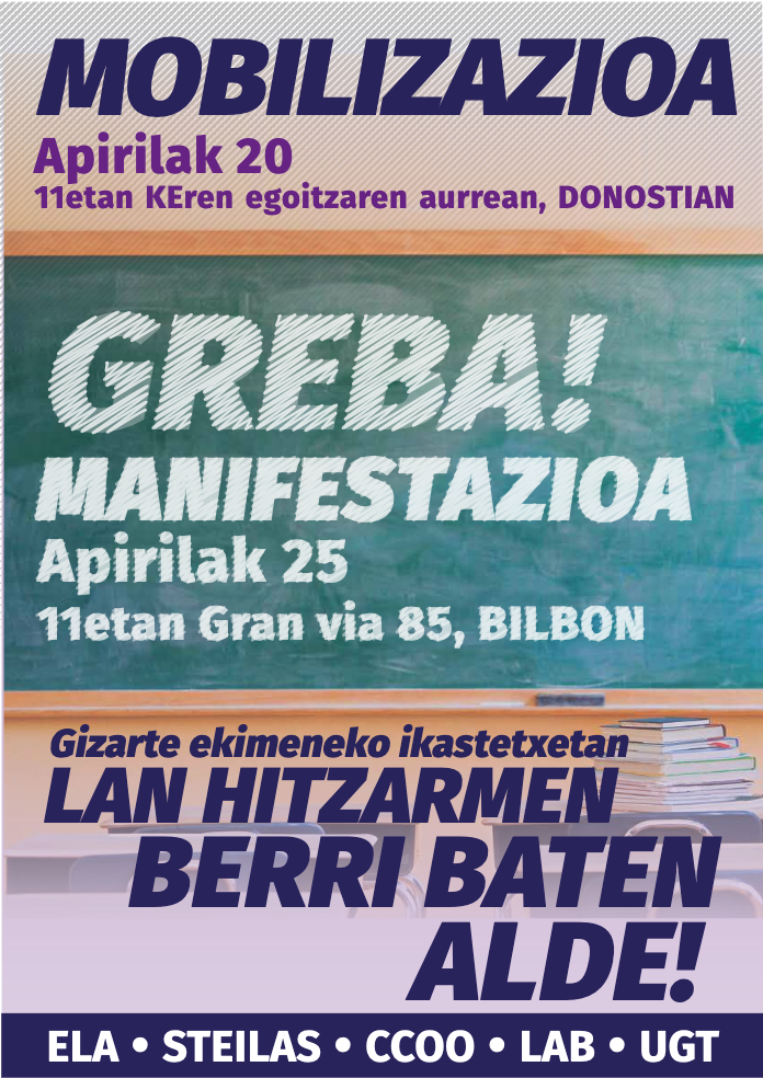 Los sindicatos LAB, ELA, STEILAS, CCOO y UGT convocamos huelga el 25 de abril en los centros de iniciativa social