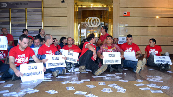 Trabajadores y trabajadoras de FCC-Alfus ocupan las oficinas de Metro Bilbao