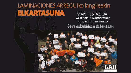 LAB hace un llamamiento a la ciudadanía de Gasteiz a apoyar la movilización de los trabajadores y trabajadoras de Laminaciones Arregui