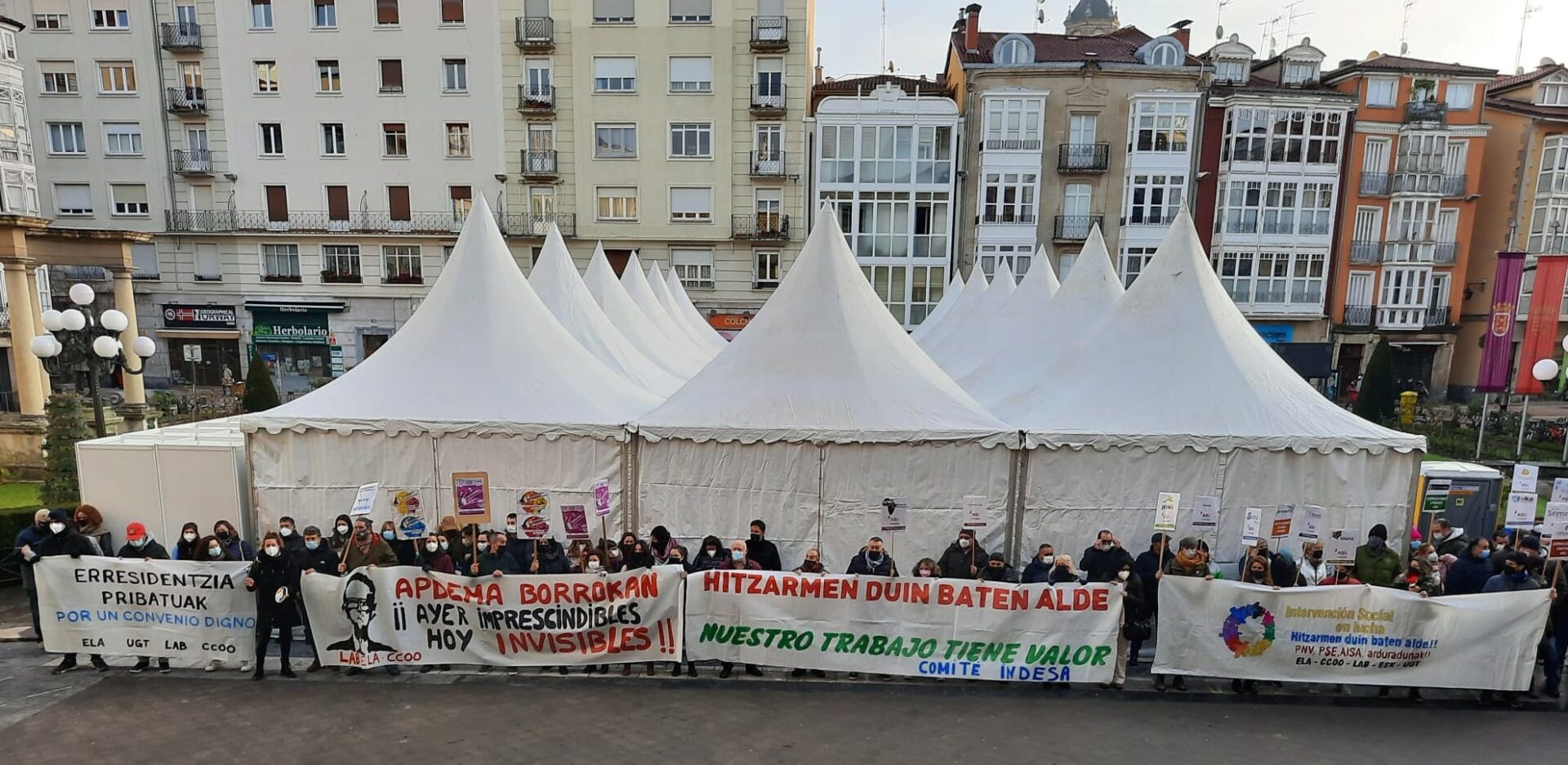 Los comités de APDEMA, de INDESA y trabajadoras de los sectores de residencias, viviendas comunitarias e intervención social de Araba se han movilizado en Gasteiz, ante la sede de la Diputación Foral del territorio. Así, han denunciado que los presupuestos del ente foral son totalmente insuficientes y no se traducen en mejoras para las personas trabajadoras de los servicios sociales subcontratados, feminizados y precarizados.