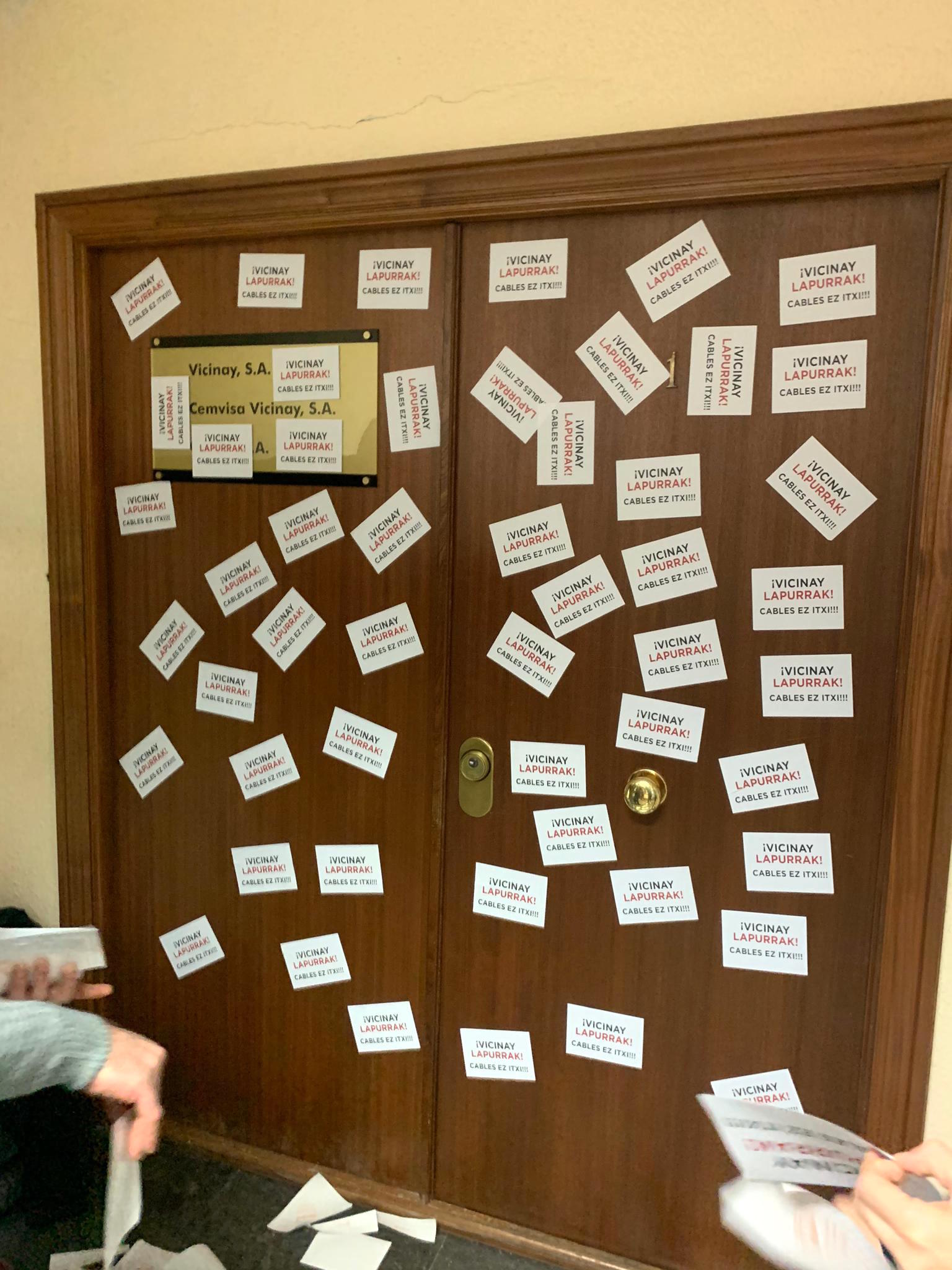 La plantilla de Cables y Alambres de Erandio y trabajadores jubilados han ocupado las oficinas de Cemvisa en Bilbo, empresa perteneciente al Grupo Vicinay, para denunciar el robo de acciones que han sufrido.