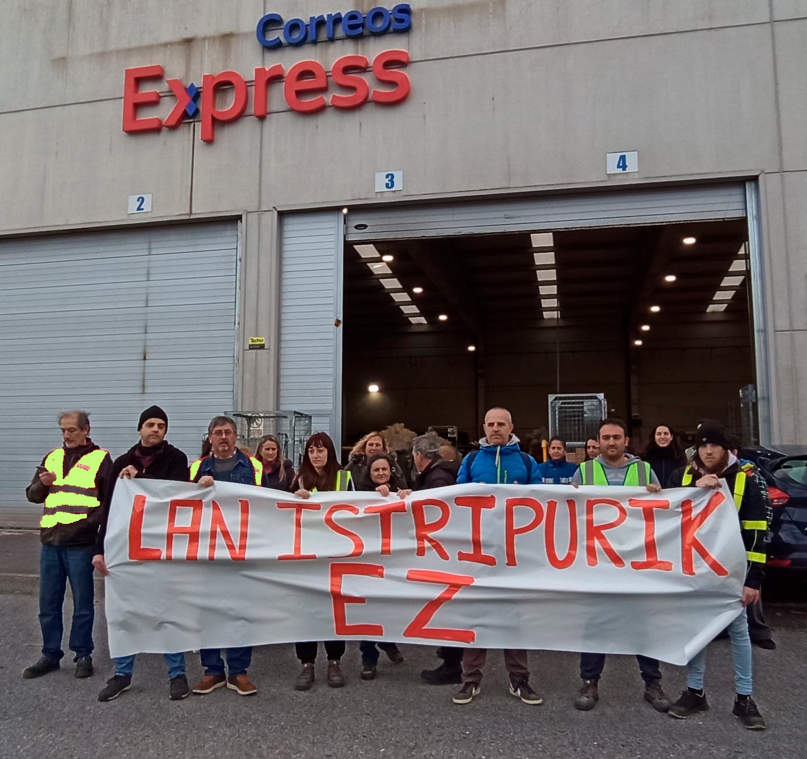 Hoy, trabajadoras y trabajadores del pabellón de Correos de Usurbil se han concentrado para denunciar el último accidente ocurrido la semana pasada a un compañero eventual, que fue atropellado por una carretilla elevadora, y las condiciones laborales de este pabellón.