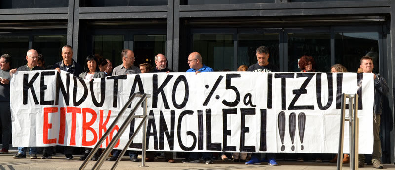 Las y los trabajadores de Eusko Irratia han exigido recuperar todas las pérdidas salariales generadas por los recortes de sueldos del 5% establecidos en 2010 por el Gobierno Vasco en las empresas públicas. Los tribunales ya han establecido que son contrarias y a la ley y la dirección de EITB ha tenido que suprimir el recorte. Sin embargo, la retroactividad de la decisión judicial sólo es de un año, y el Gobierno Vasco tiene aún secuestrados los salarios que van desde el 2010, año en el que se dio la sentencia, hasta febrero de 2015.