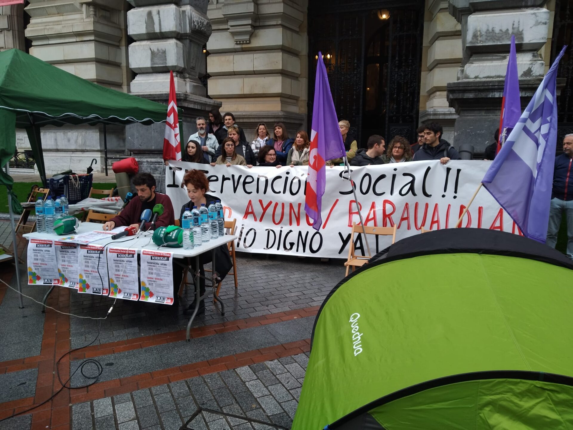Desde hoy hasta el miércoles 17 de abril realizaremos un ayuno frente a la Diputacion Foral de Bizkaia, en la Gran Vía. de Bilbo. Una movilización permamente durante tres días, para señalar a Gizardatz y a las administraciones públicas, como la Diputación Foral de Bizkaia, como responsables de la no firma del convenio.