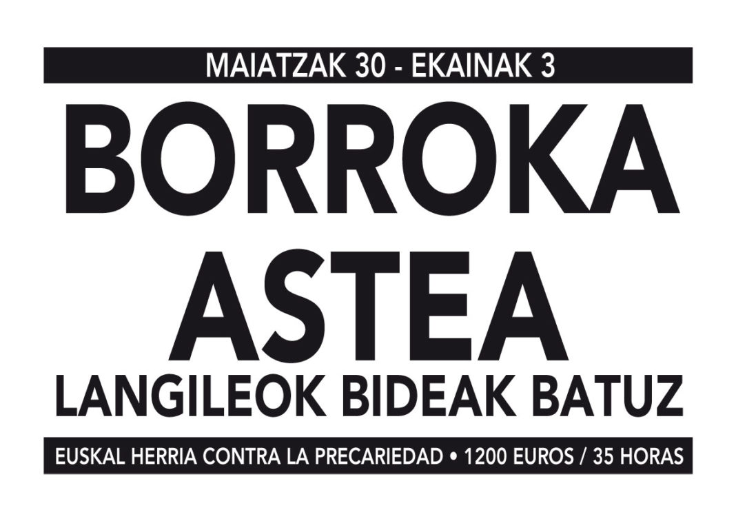 Ante los ataques y los recortes que vienen del Estado español y francés y de los Gobiernos de aquí hemos elegido la vía de la confrontación, estamos luchando a favor de un marco socioeconómico vasco y avanzamos hacia un nuevo modelo basado en el reparto del trabajo y de la riqueza. Estamos recorriendo este camino gracias a la fuerza y la movilización de la clase trabajadora.