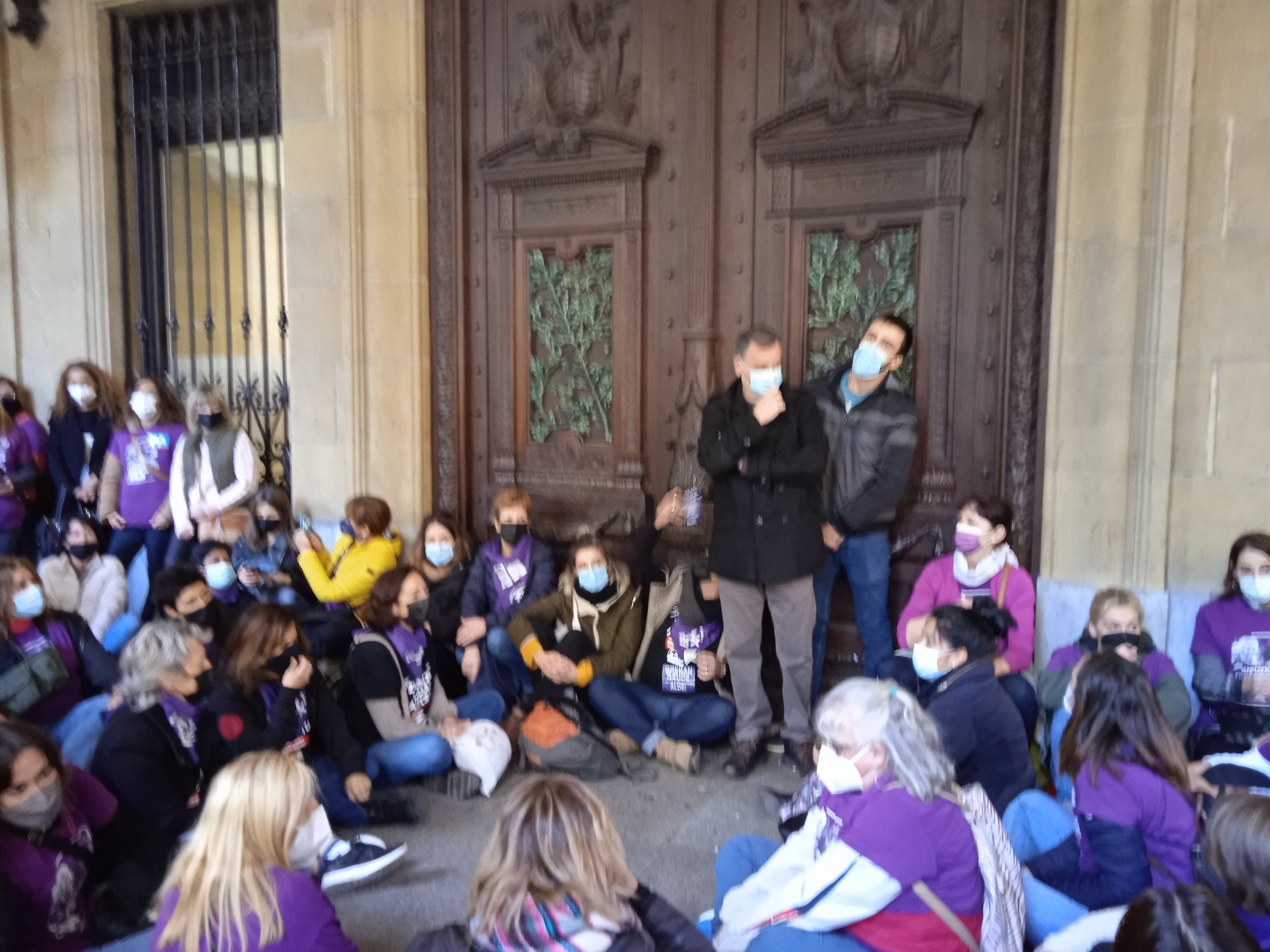 Gipuzkoako helduen egoitzetako langileek beste greba egun bat egin dute, eta, Foru Aldundiaren aurrean mobilizatu dira, orain arteko bilera eskaerek jasotako ezezkoak salatzeko. Hori dela eta, eserialdia egin dute, Aldundiaren barruan sindikatuetako ordezkariek beste bilera eskaera bat erregistratzen zuten bitartean. Datarik ez digute eman, berriro ere. Deituko digutela esanda agurtu gaituzte, kanpoan zirenei atea itxi eta gero.