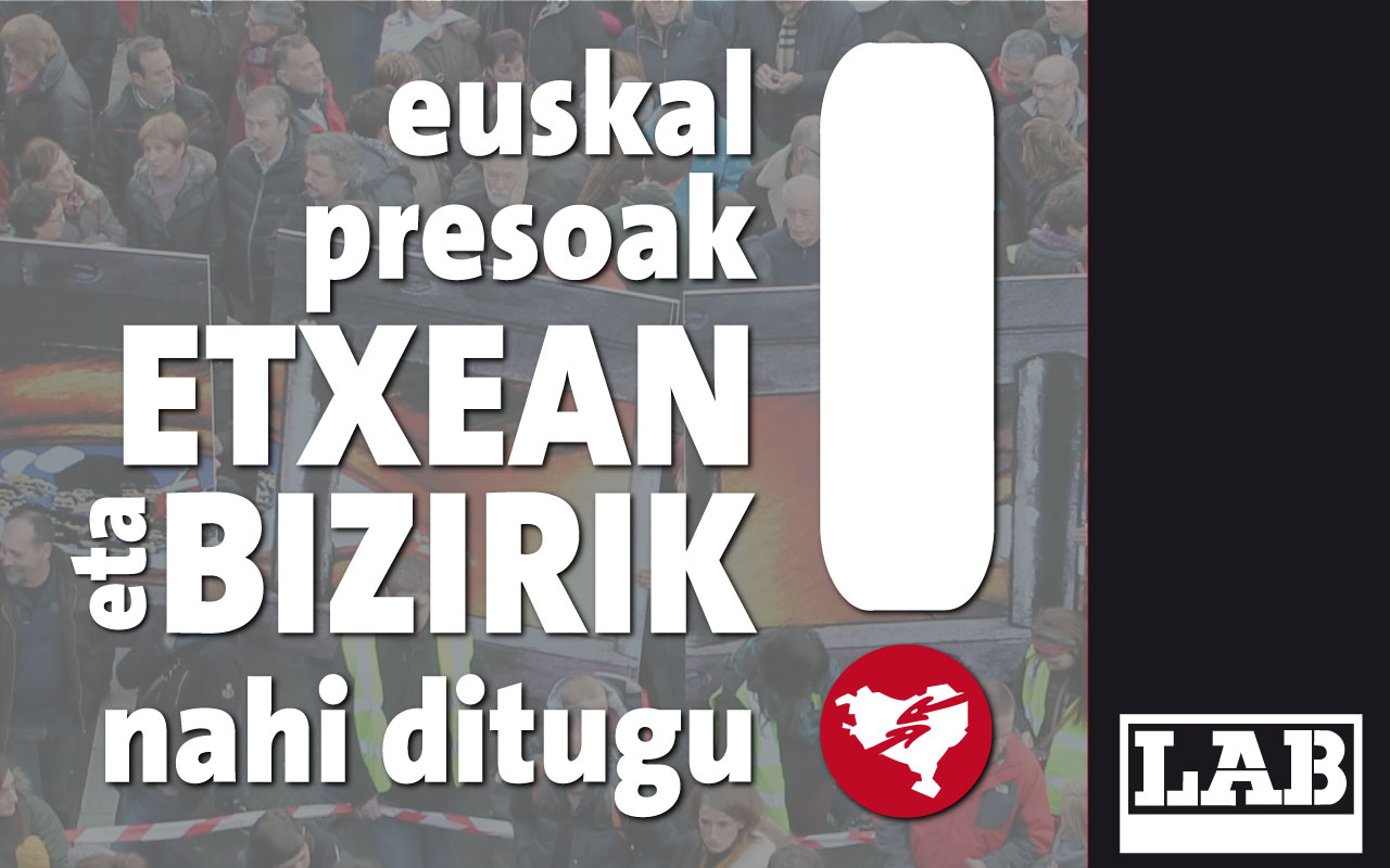 LAB modu aktiboan mobilizatu da presoen eskubideen alde, eta orain, aktibazio soziala mantendu eta zabaltzearen garrantzia azpimarratu nahi du. Langileak kalera atera behar gara presoen eskubideen eta hauen euskal herriratzearen alde, espetxe-politika aldatzea helburu. Horrela, datozen egunotarako antolatuta dauden ekimen eta mobilizazioetan parte hartzeko deia egiten dugu.