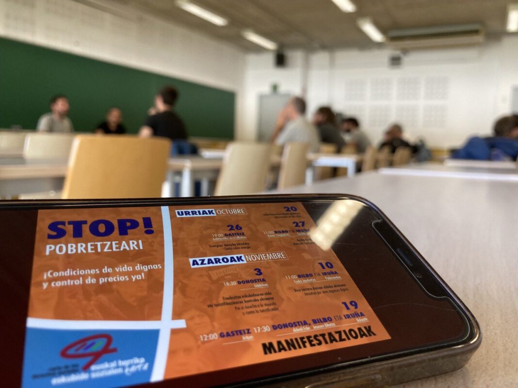 Euskal Herriko Eskubide Sozialen Kartako eragileak mobilizatzen ari gara, bizitzaren garestitzearen aurka, “Pobretzeari STOP! Condiciones de vida dignas y control de precios ya!” lemapean. Dinamika mobilizatzaile horren baitan, urrian egindako hitzaldi eta azoka gardenen ostean, etxebizitza eskubidearen aldeko mahai ingurua egin dugu gaur Donostian, eta, arratsaldean, Gipuzkoako hiriburuan ere, protesta egingo dugu 18:30ean, udaletxe aurrean. Etxebizitza eskubidearen alde eta turistifikazioaren aurkako ekimena izango da.