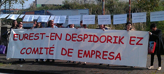Atzo, apirilak 16, goizeko EURESTeko Langileen Komiteak enpresaren Derioko bulegoen aurrean protesta bat burutuko zuen, "Euresten Enplegu Suntsiketarik ez" lelopean.