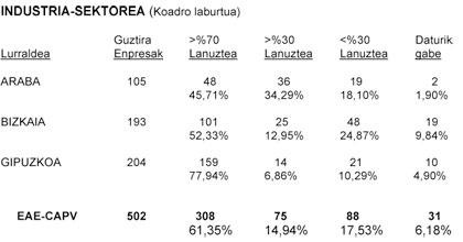 Eranskinak dioen legez, erabateko lanuztea -%70etik gorakoa- 308 enpresatan izan da, hots, enpresen %61,35an.