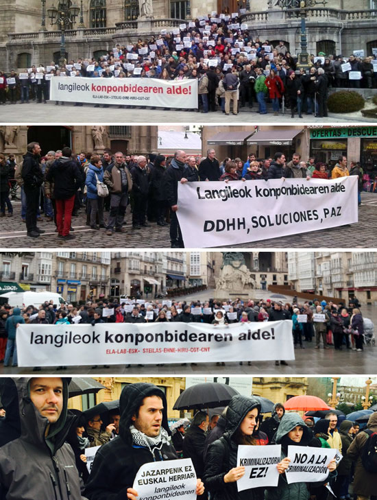 Asteleheneko operazio polizialaren aurrean ELA, LAB, ESK, STEE-EILAS, EHNE, Hiru, CGT eta CNT sindikatuok deituta euskal langileok Euskal Herriko hiriburuetan elkarretaratzeak egin ditugu "Langilok konponbidearen alde" goiburupean.
