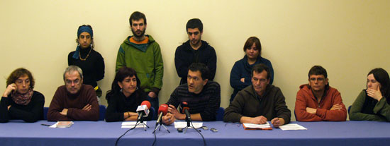 ELA, LAB, ESK, STEE-EILAS, EHNE eta HIRU sindikatuek eta azken greba orokorrean (2011ko urtarrilaren 27ko) auzibidean jarriak izan ziren hainbat lagunek agerraldia egin dute gaur greba eskubidearean kriminalizazioa salatzeko.