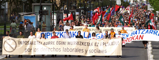 Osasungintzan, irakaskuntzan eta zerbitzu sozialetan ematen ari diren murrizketen aurka sindikatu eta gizarte eragileek manifestazioak egin dituzte gaur Donostia eta Iruñean. Bi manifestazioetan 2.000 pertsonatik gora parte hartu dute.