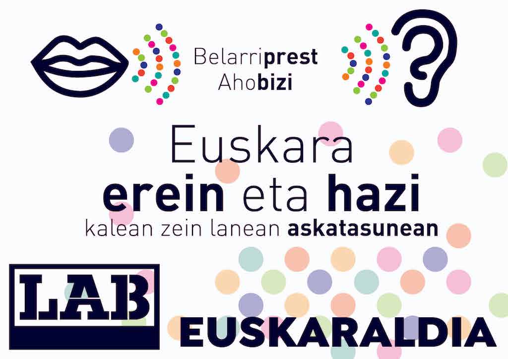 EUSKARALDIA euskararen erabilera areagotzeko ariketa sozial eta kolektiboa den neurrian, LABek bat egiten du dinamikarekin eta EUSKARALDIAn eragile aktiboa izatea erabaki dugu. LAB sindikatuko kideok, urte osoan zehar bezala, azaroaren 23tik abenduaren 3ra, 11 egunez, euskara erein egingo dugu kalean zein lanean, langileok euskararen erabileran hazteko.