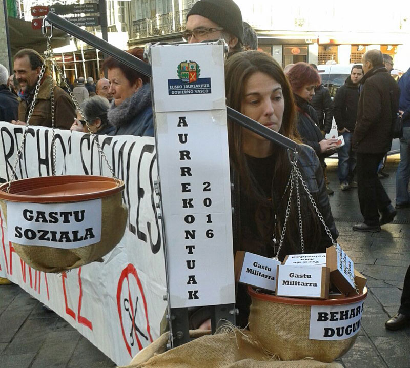 Eragile sozial desberdinek deituta 2016ko aurrekontuak antisozialak direla salatu dugu gaur Gasteizen. Eusko Jaurlaritzaren 2016rako aurrekontuetan ez dago egoera aldatzeko inolako asmorik, eta alternatibaren bidea jorratu beharrean, jendarteari bizkarra ematen dio. Ez diote etorkizunari begiratzen, eredu sozial eta ekonomiko sendo bat eraikitzeko aukera baztertzen ari dira, herritar zein ordezkari sozial eta sindikalak alde batera utziz.