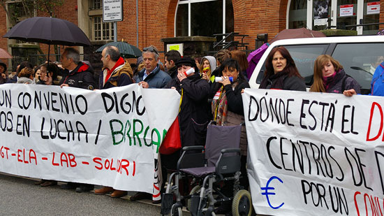 Ezintasunak dituzten pertsonentzako arreta zentruetako langileek paro dinamika bati eman diete hasiera gaur beren sektoreko lan hitzarmenak bizi duen egoera desblokeatzeko.