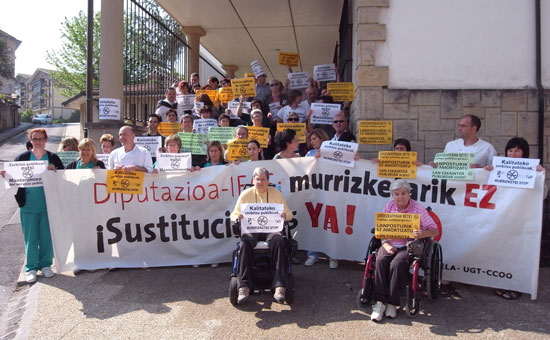 Aldundian eta GUFEn (Gizarte Urgazpenerako Foru Erakundea) ordezkaritza duten sindikatuak aspalditik salatzen ari dira gobernu foralak langileen ordezkapenetan egindako murrizketak kalte handia eragiten ari direla egoitzetako erabiltzaileek jasotzen duten zerbitzuan, langile faltagatik: pertsonen higienea, jatorduetarako laguntza, aisialdiko jarduerak… Era berean, sindikatuek salatu dute gizarte zerbitzuen arloko murrizketek langileen zama handitzen dutela eta ordezkapenak egiten zituzten pertsonen enplegu publikoa suntsitzen dutela. Horrekin batera, Jose Luis Bilbaoren agindupeko Aldundia zerbitzu publikoetan sustatzen ari den pribatizazioaz ohartarazi dute, pribatizazio horrek ondorio hauek baititu: enpleguaren prekarietatea, zerbitzuaren kalitatea murriztea eta mendetasun egoeren kontura negozioa egiten eta aberasten ari diren enpresen eta sozietateen sare bat.