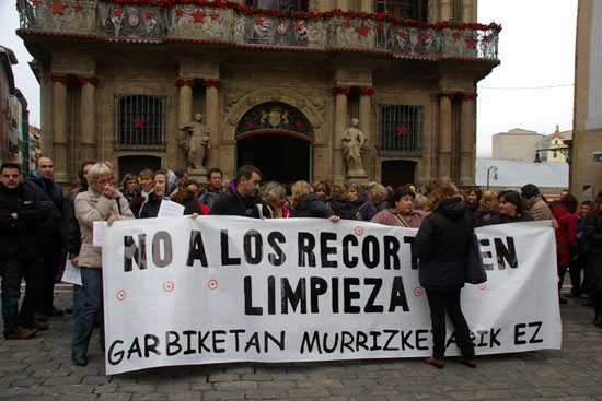 Nafarroako garbiketa langileek, Parlamentuko eta Iruñeko Udaleko hurrengo diru laguntzetan aurreikusten diren murrizketen aurrean, euren desadostasuna erakutsi zuten atzo goizean. Ehun langile inguru murrizketa hauek zerbitzuaren kalitatean, lan postuetan eta lan baldintzetan eragina izango dutela adierazi zuten konzentrazio baten bitartez. Hurrengo abenduaren 13an 10:30etan Parlamentuaren aurrean beste konzentrazio bat iragarri zuten.